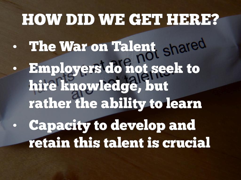 • Employers do not seek to hire knowledge, but rather the ability to learn