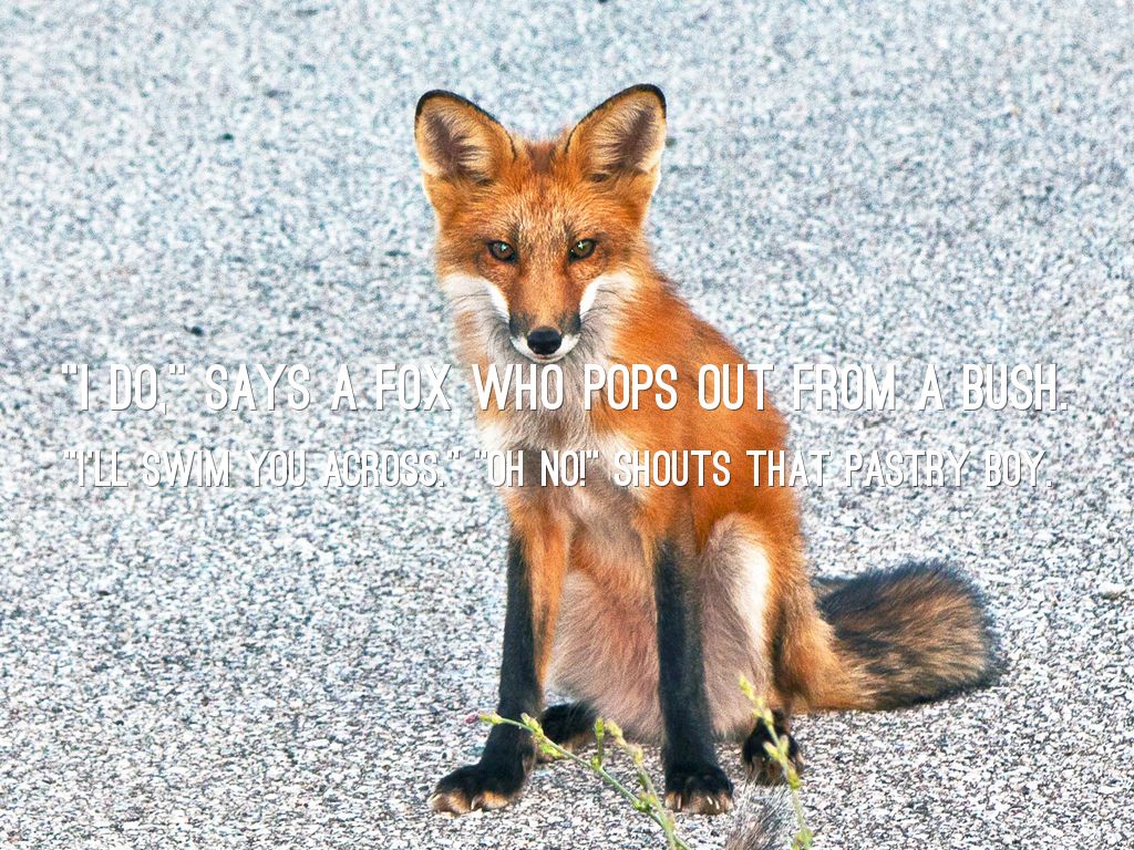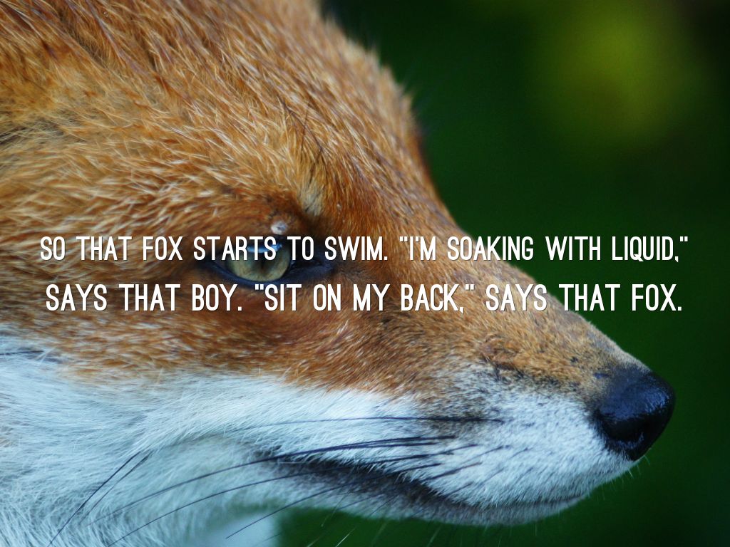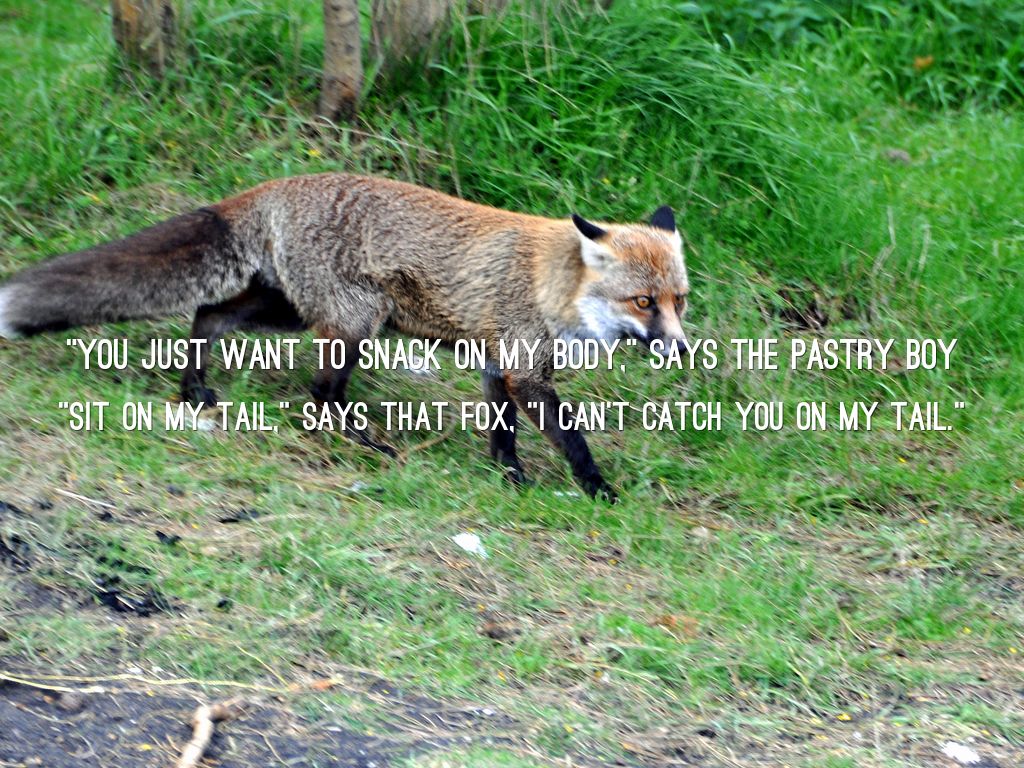 "sit on my tail," says that fox, "i can't catch you on my tail."