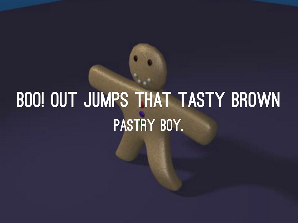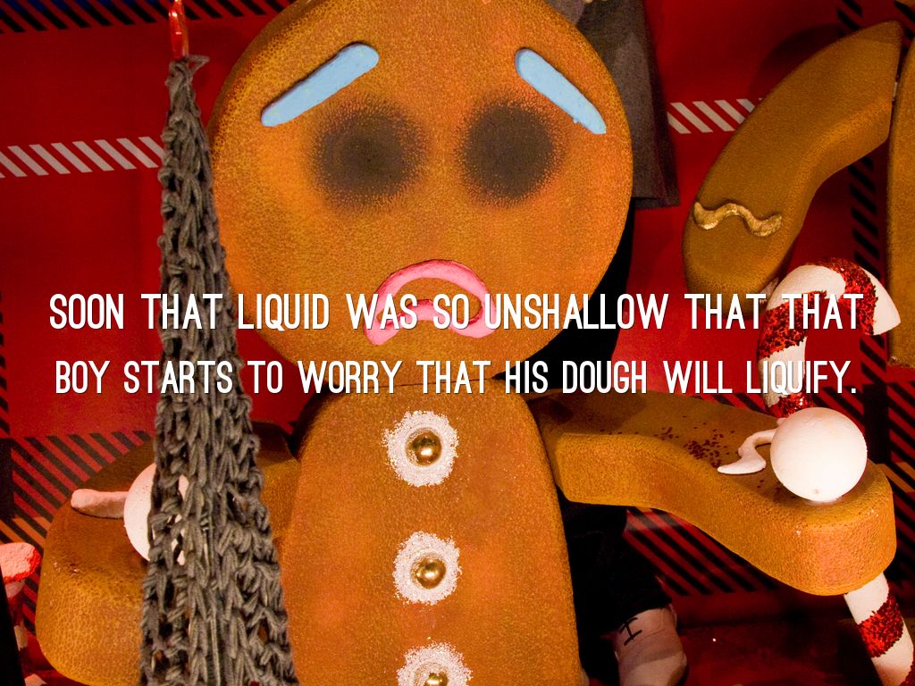 "I'll swim you across." "oh no!" shouts that pastry boy.