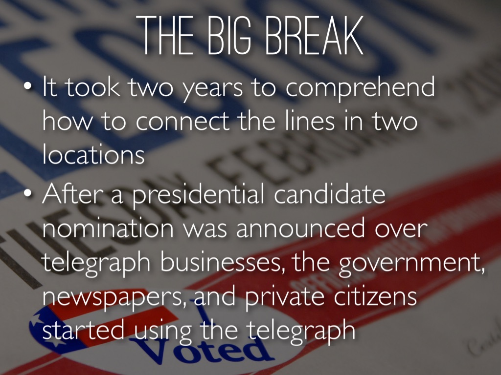 After a presidential candidate nomination was announced over telegraph businesses, the government, newspapers, and private citizens started using the telegraph