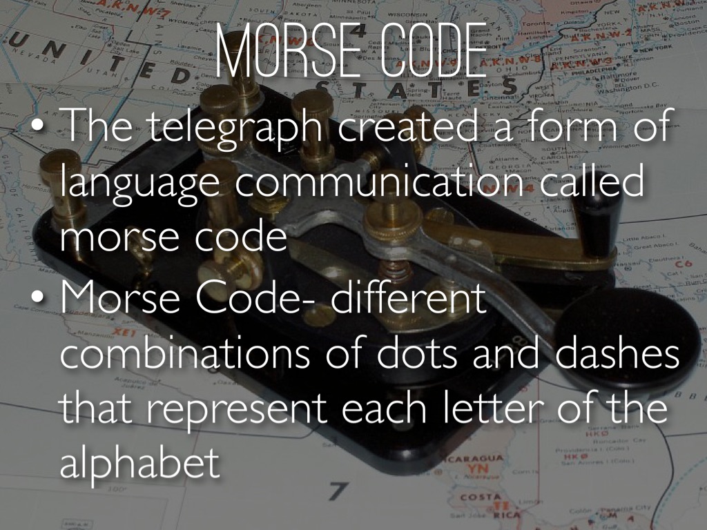 Morse Code- different combinations of dots and dashes that represent each letter of the alphabet