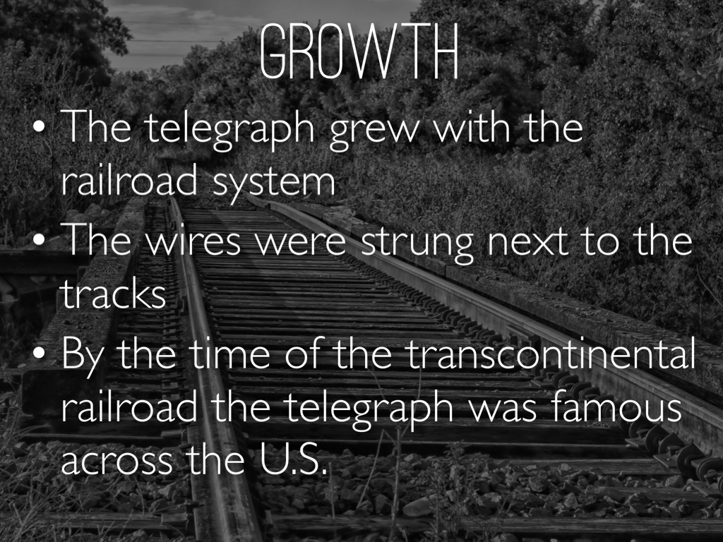 By the time of the transcontinental railroad the telegraph was famous across the U.S.
