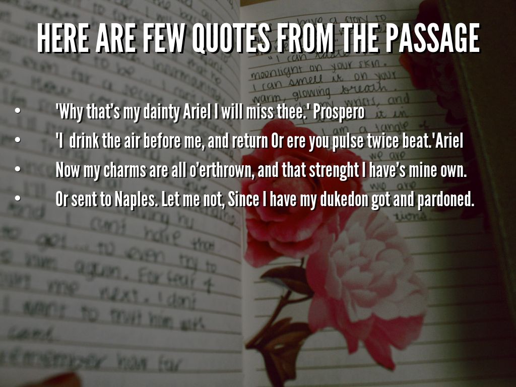 • "Why that's my dainty Ariel I will miss thee." Prospero