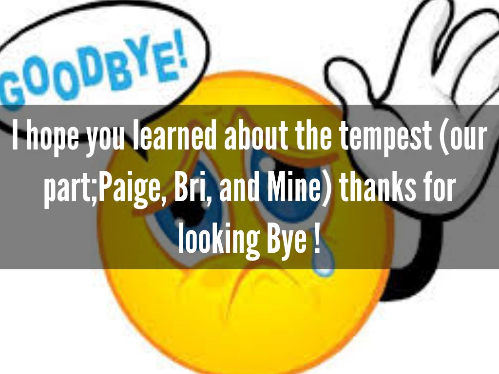 I hope you learned about the tempest (our part;Paige, Bri, and Mine) thanks for looking Bye !