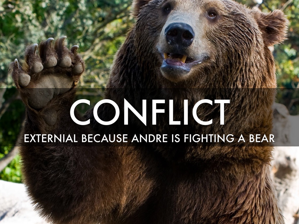 EXTERNIAL BECAUSE ANDRE IS FIGHTING A BEAR