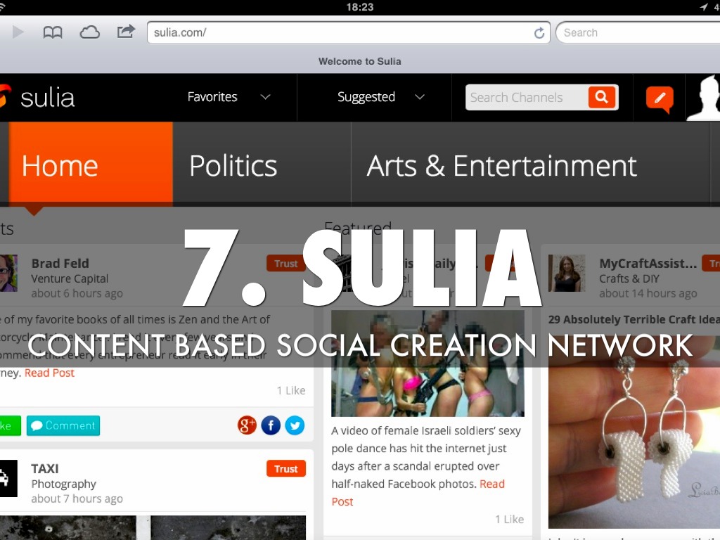 Www.sulia.com is a social creation content network powered by passionate community broken down by categories. Includes influential bloggers and quality publications.