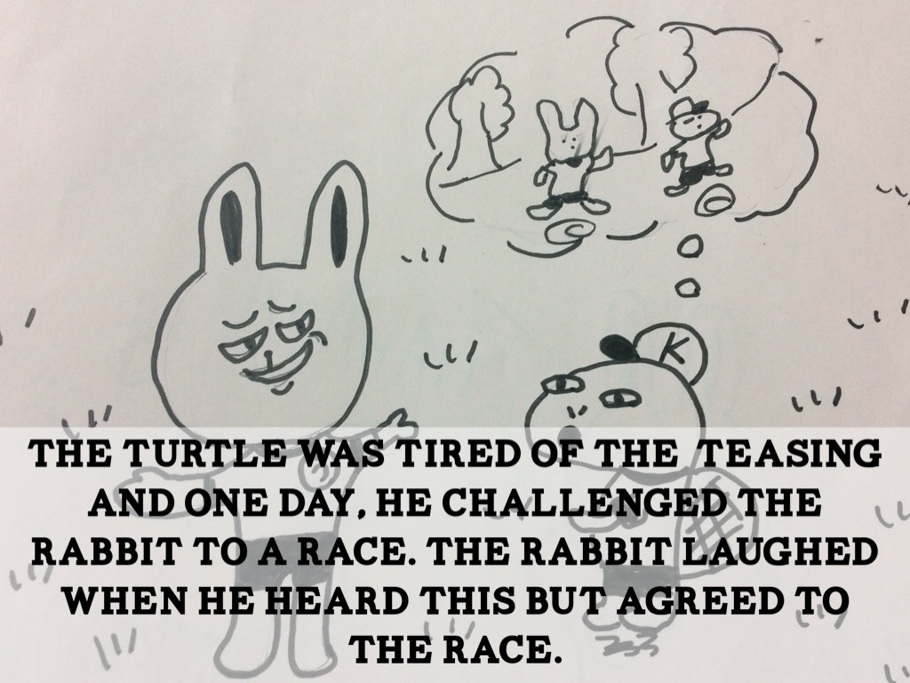 The turtle was tired of the teasing and one day, he challenged the rabbit to a race. The rabbit laughed when he heard this but agreed to the race.