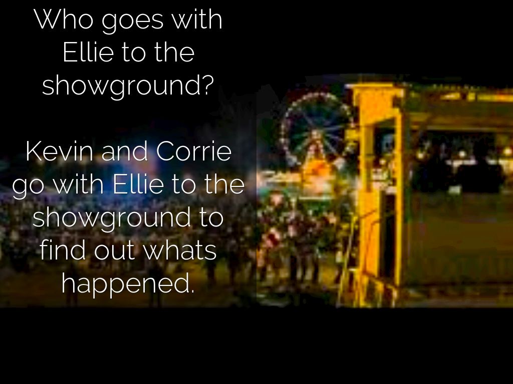 Kevin and Corrie go with Ellie to the showground to find out whats happened.