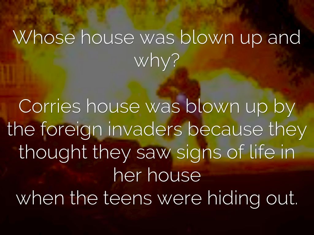 Corries house was blown up by the foreign invaders because they thought they saw signs of life in her house