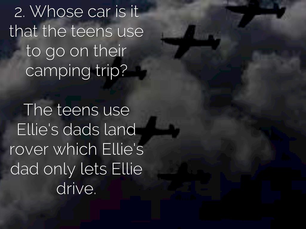 The teens use Ellie's dads land rover which Ellie's dad only lets Ellie drive.
