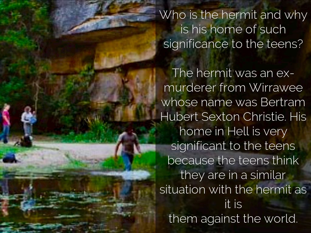 The hermit was an ex-murderer from Wirrawee whose name was Bertram Hubert Sexton Christie. His home in Hell is very significant to the teens because the teens think they are in a similar situation with the hermit as it is