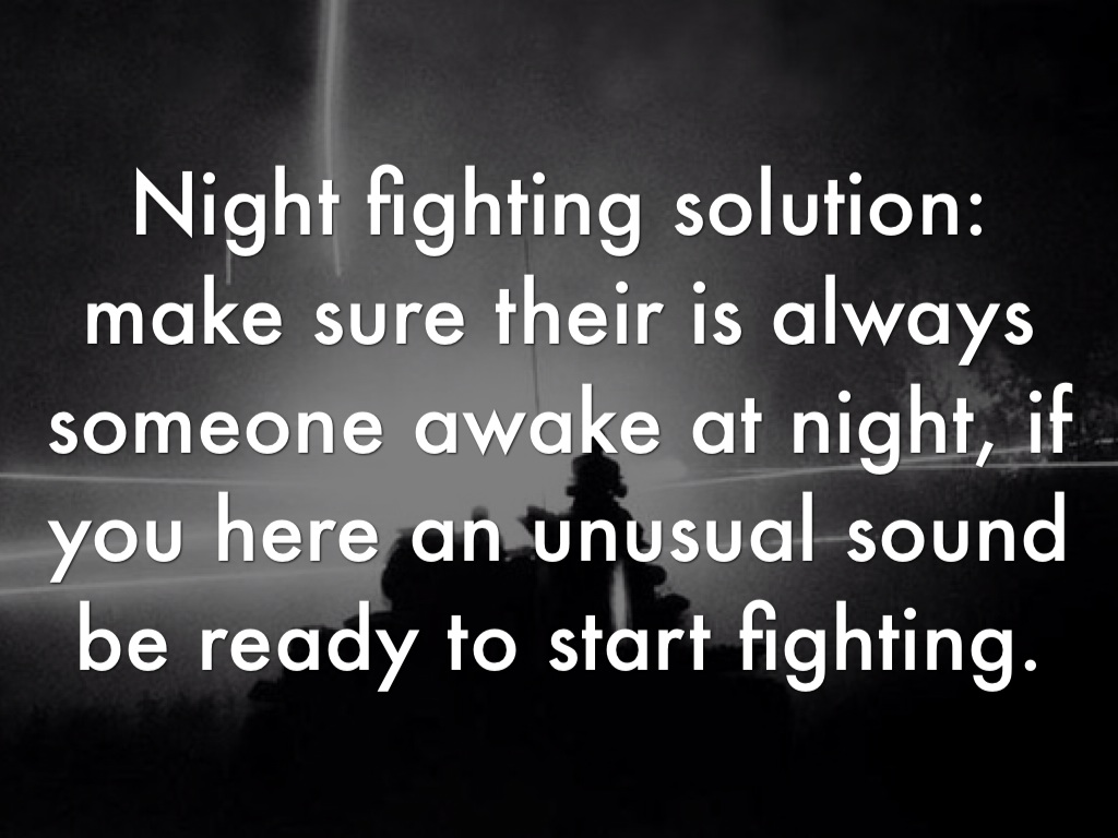 Night fighting solution: make sure their is always someone awake at night, if you here an unusual sound be ready to start fighting.