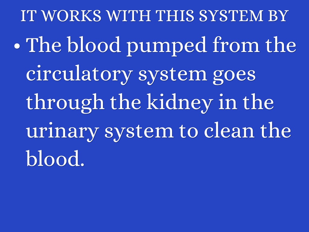 - The blood pumped from the circulatory system goes through the kidney in the urinary system to clean the blood.