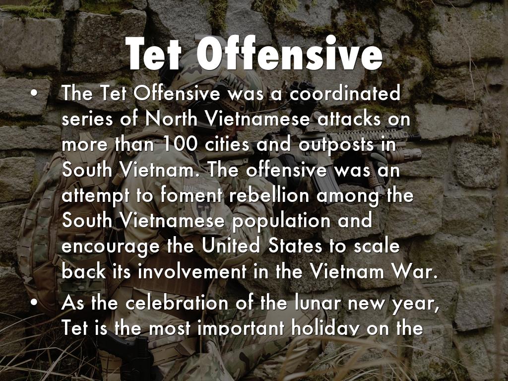 The Tet Offensive was a coordinated series of North Vietnamese attacks on more than 100 cities and outposts in South Vietnam. The offensive was an attempt to foment rebellion among the South Vietnamese population and encourage the United States to scale back its involvement in the Vietnam War.