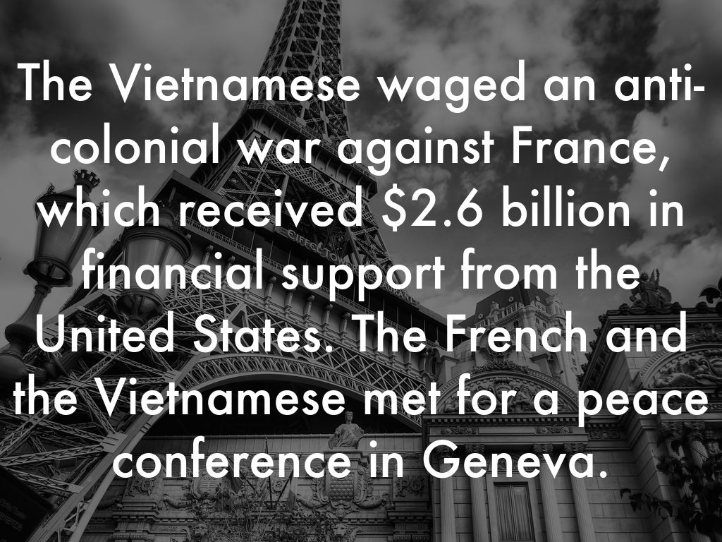 The Vietnamese waged an anti-colonial war against France, which received $2.6 billion in financial support from the United States. The French and the Vietnamese met for a peace conference in Geneva.
