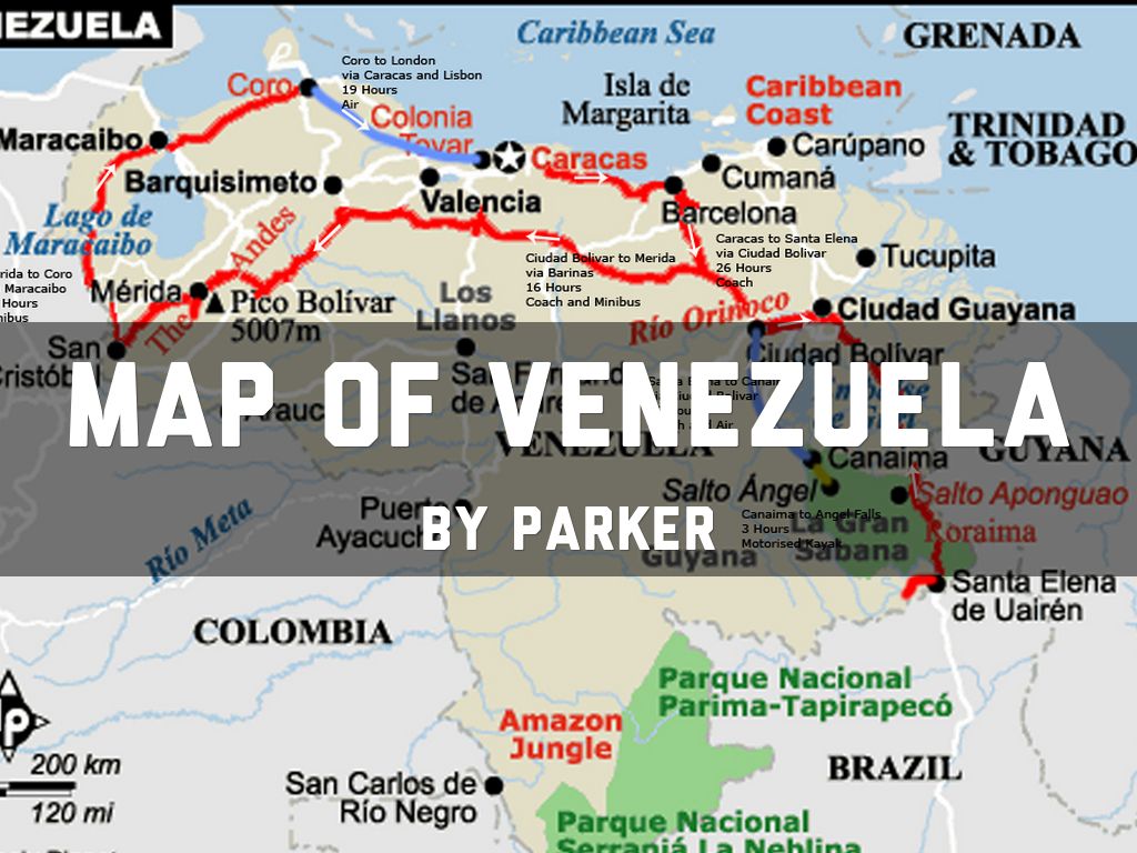 Venezuela is bordered by the Caribbean Sea, Brazil,and Columbia.