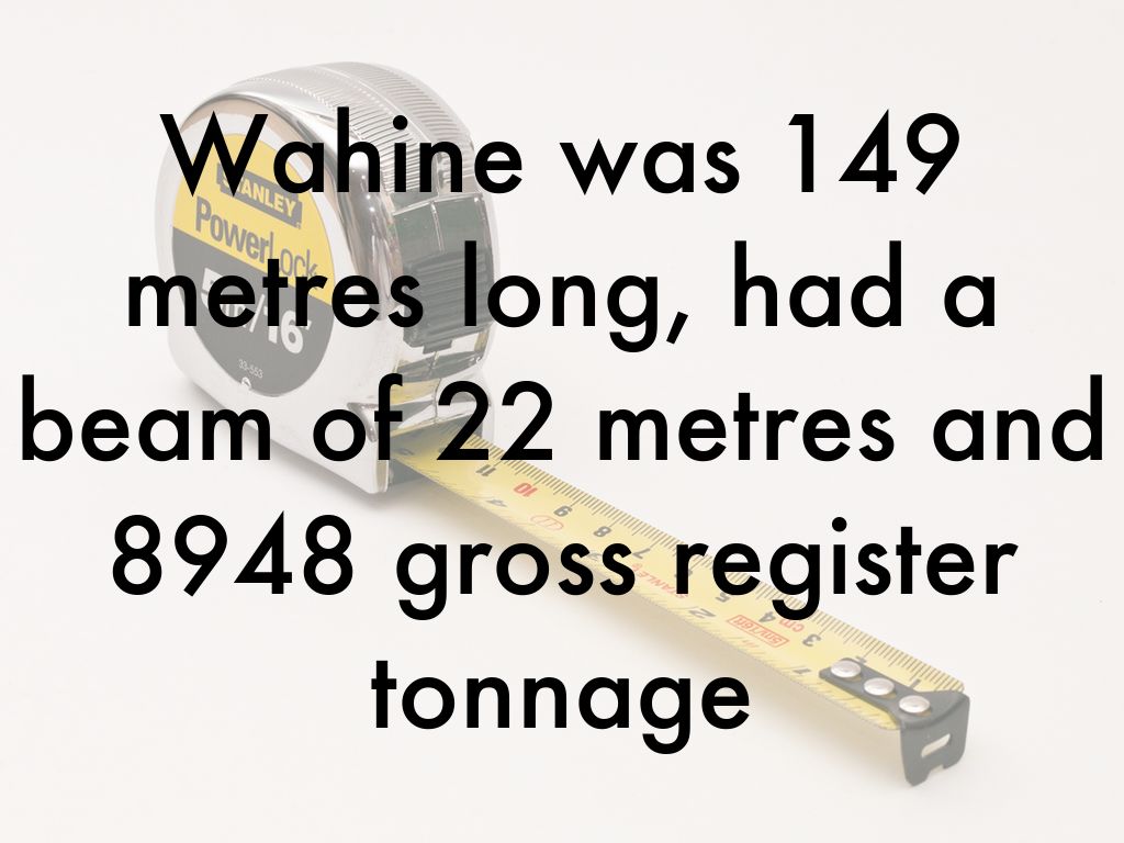 Wahine was 149 metres long, had a beam of 22 metres and 8948 gross register tonnage