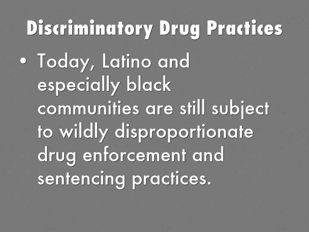 Today, Latino and especially black communities are still subject to wildly disproportionate drug enforcement and sentencing practices.