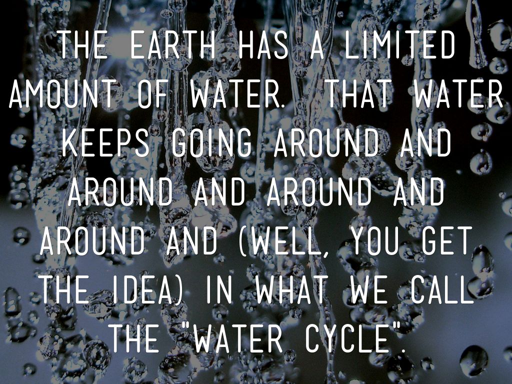 The earth has a limited amount of water. That water keeps going around and around and around and around and (well, you get the idea) in what we call the "Water Cycle".