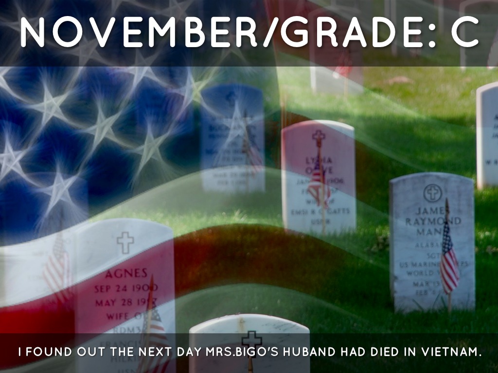 I FOUND OUT THE NEXT DAY MRS.BIGO'S HUBAND HAD DIED IN VIETNAM.