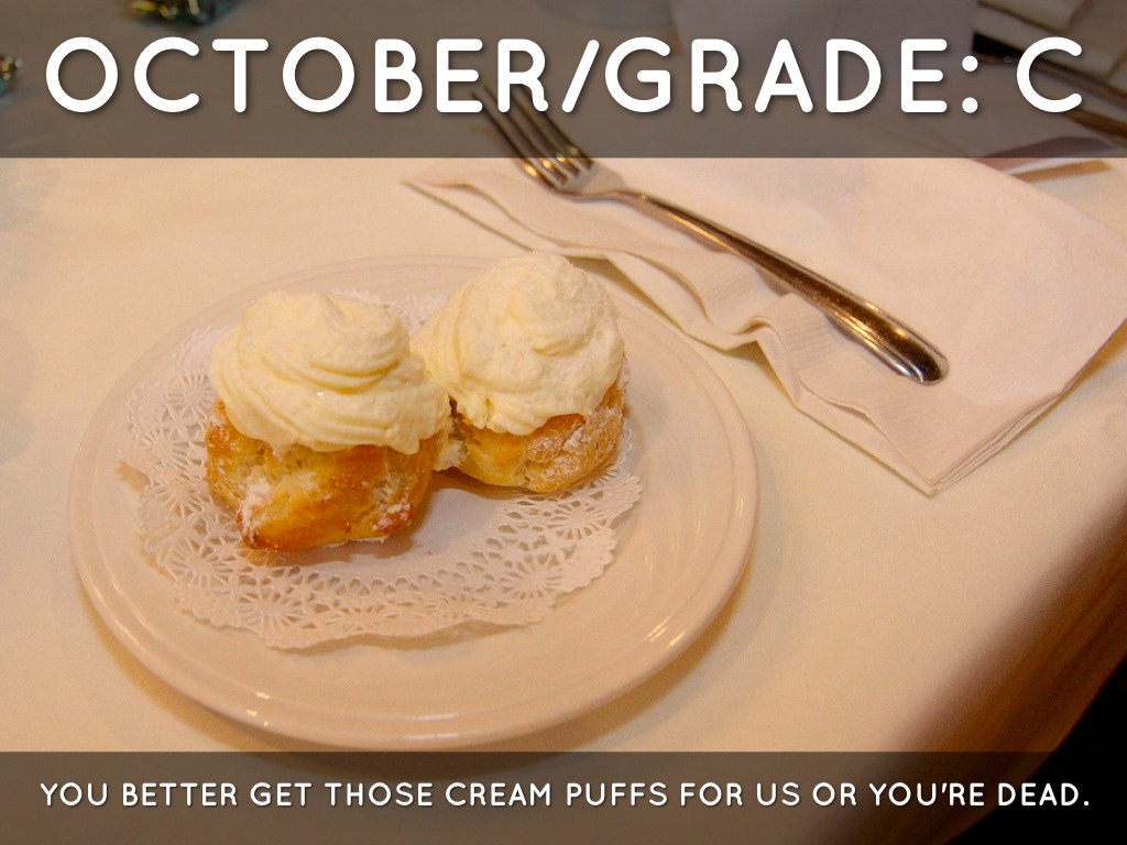 YOU BETTER GET THOSE CREAM PUFFS FOR US OR YOU'RE DEAD.