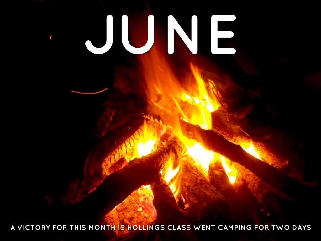 A VICTORY FOR THIS MONTH IS HOLLINGS CLASS WENT CAMPING FOR TWO DAYS