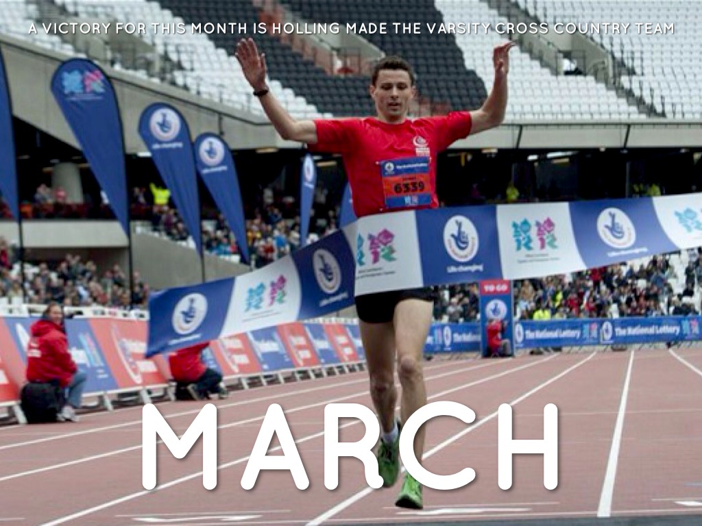 A VICTORY FOR THIS MONTH IS HOLLING MADE THE VARSITY CROSS COUNTRY TEAM