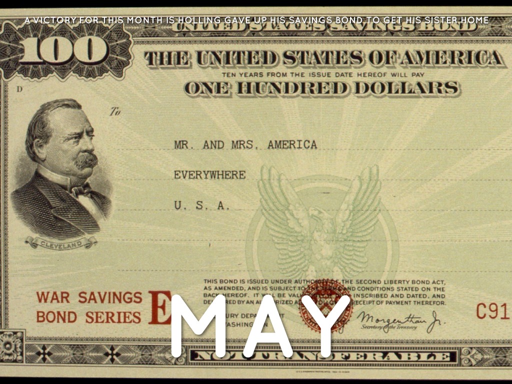 A VICTORY FOR THIS MONTH IS HOLLING GAVE UP HIS SAVINGS BOND TO GET HIS SISTER HOME
