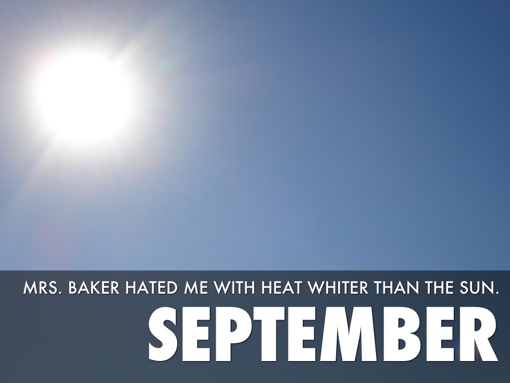 MRS. BAKER HATED ME WITH HEAT WHITER THAN THE SUN.