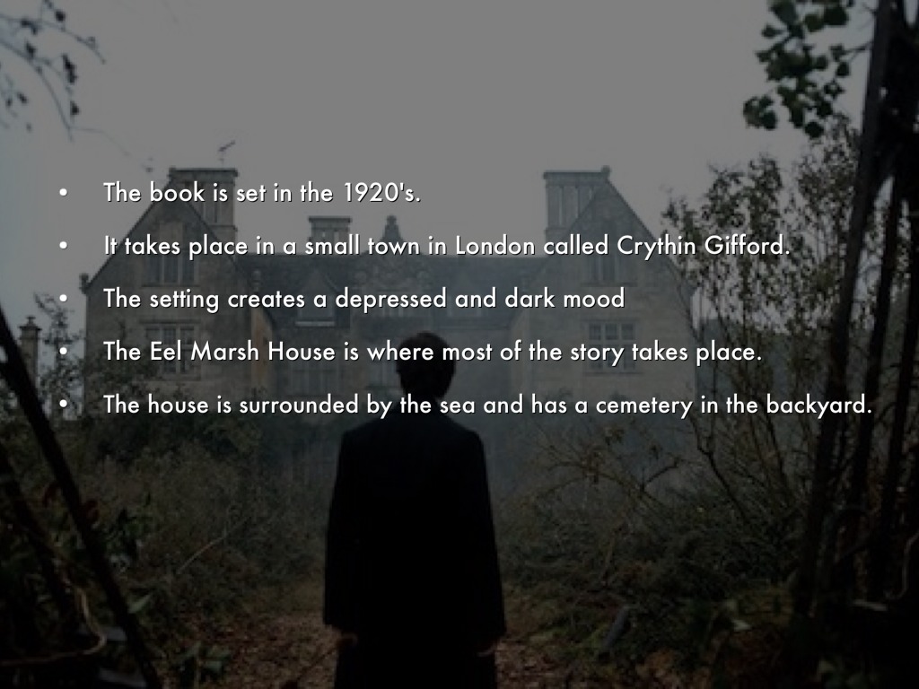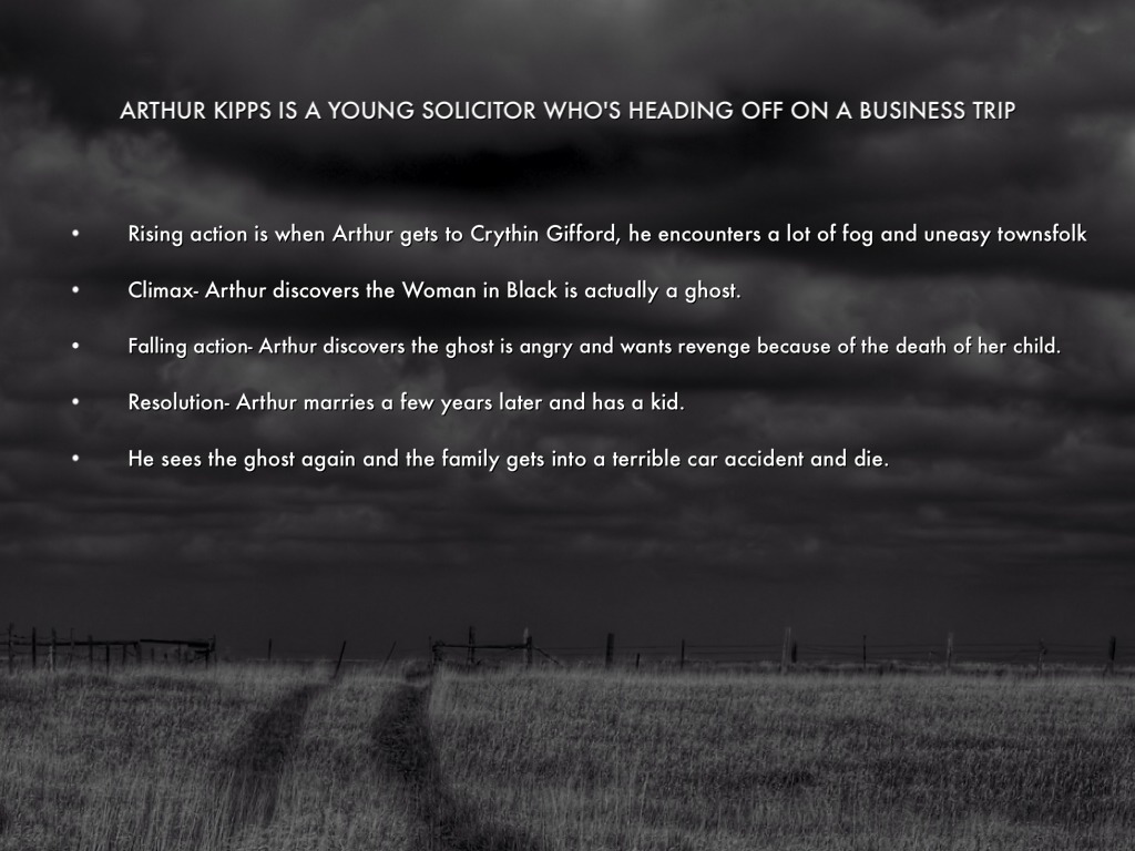 The protagonist is Arthur Kipps, he is a lawyer and a widower with a young son that takes a job to gather information of a recently deceased woman
