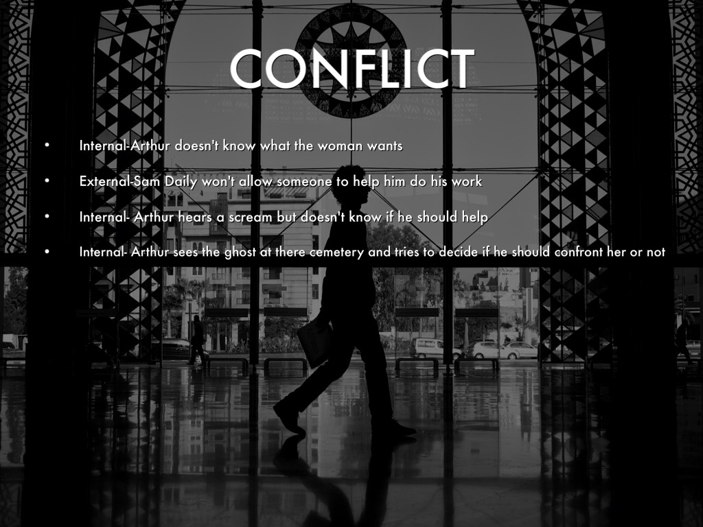 Falling action- Arthur discovers the ghost is angry and wants revenge because of the death of her child.