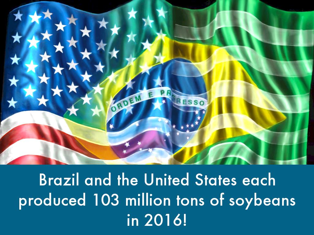Brazil and the United States each produced 103 million tons of soybeans in 2016!