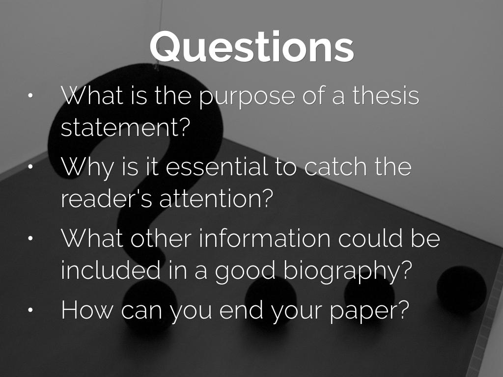 Thesis Statement: It's the purpose of your paper in one sentence!