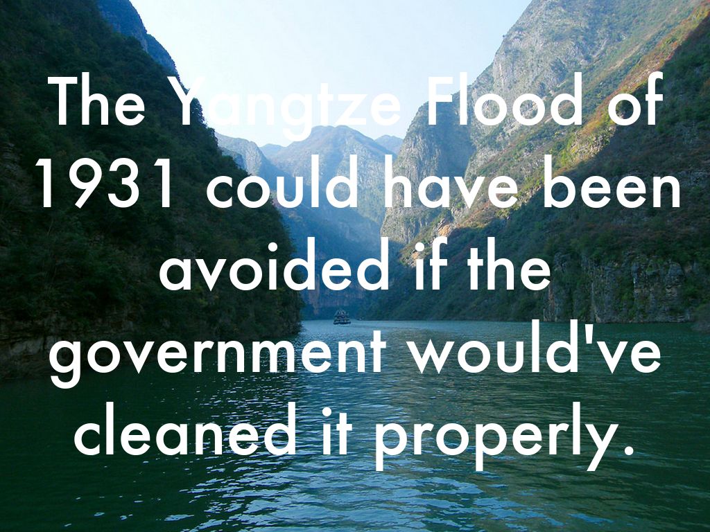 The Yangtze Flood of 1931 could have been avoided if the government would've cleaned it properly.