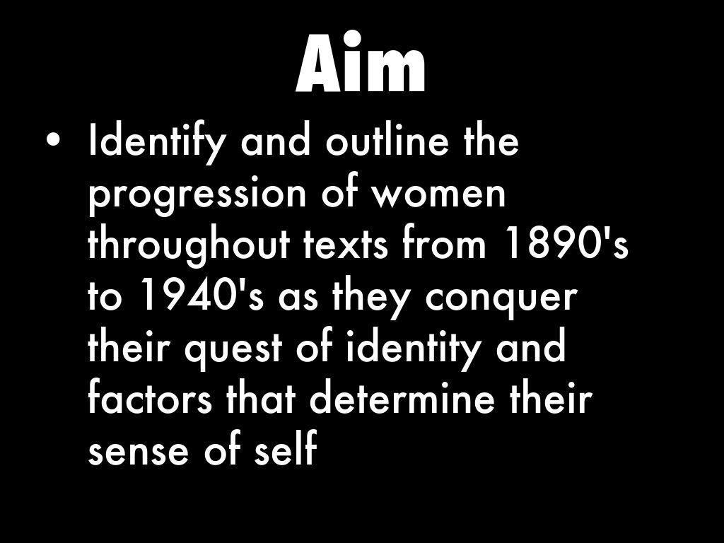 • Identify and outline the progression of women throughout texts from 1890's to 1940's as they conquer their quest of identity and factors that determine their sense of self
