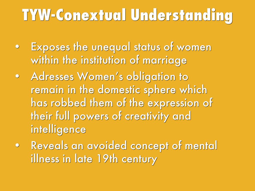 • Who talks to the yellow wallpaper The lady with the “temporary nervous depression” Obsessed with the flaxen within the trickled walls