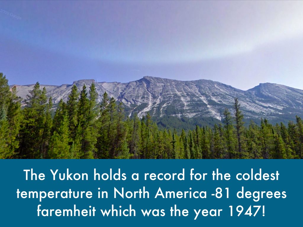 The Yukon holds a record for the coldest temperature in North America -81 degrees faremheit which was the year 1947!