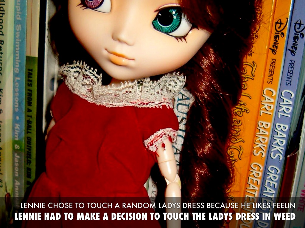 LENNIE HAD TO MAKE A DECISION TO TOUCH THE LADYS DRESS IN WEED