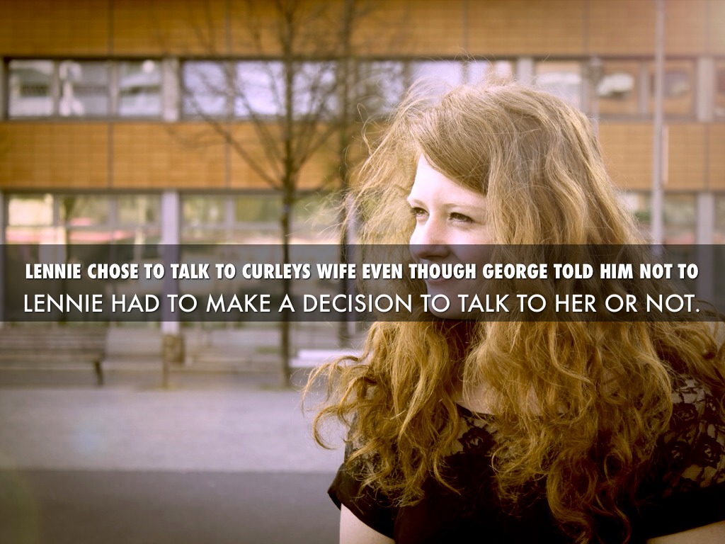 LENNIE CHOSE TO TALK TO CURLEYS WIFE EVEN THOUGH GEORGE TOLD HIM NOT TO