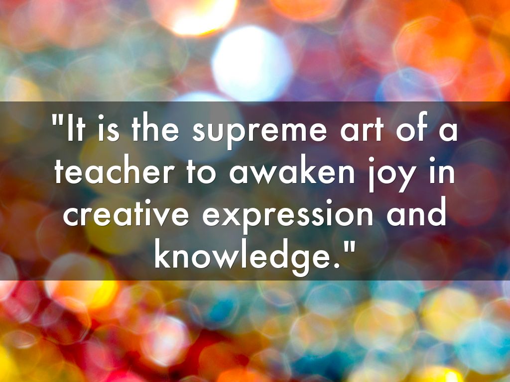 "It is the supreme art of a teacher to awaken joy in creative expression and knowledge."