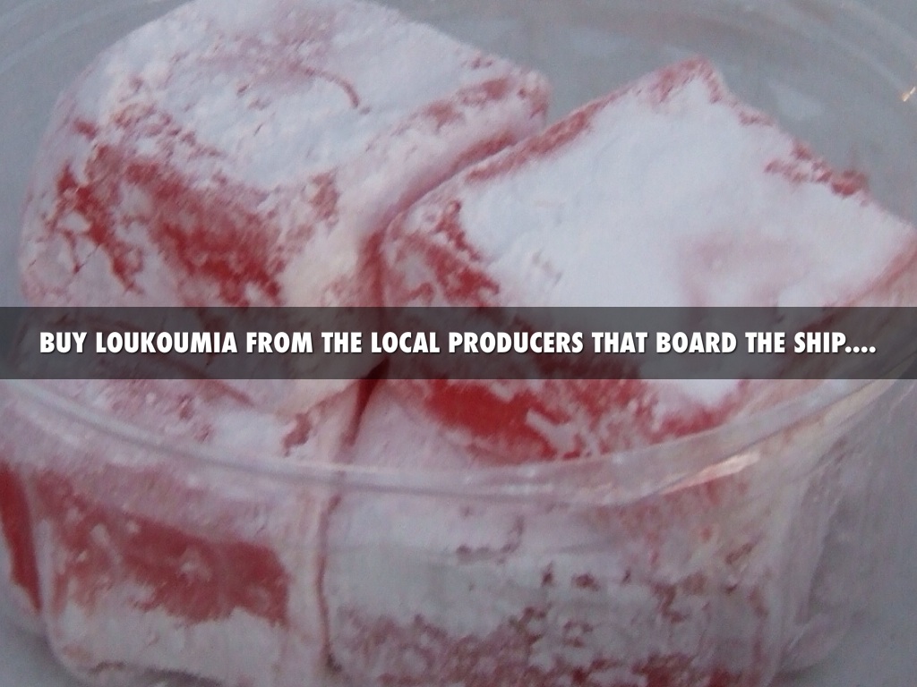BUY LOUKOUMIA FROM THE LOCAL PRODUCERS THAT BOARD THE SHIP....