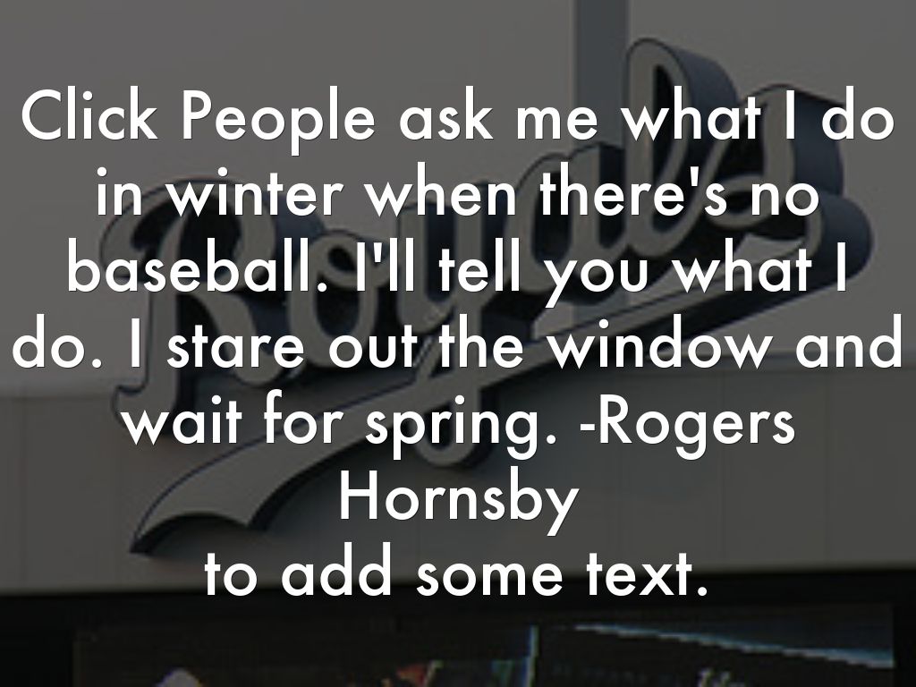 Click People ask me what I do in winter when there's no baseball. I'll tell you what I do. I stare out the window and wait for spring. -Rogers Hornsby to add some text.