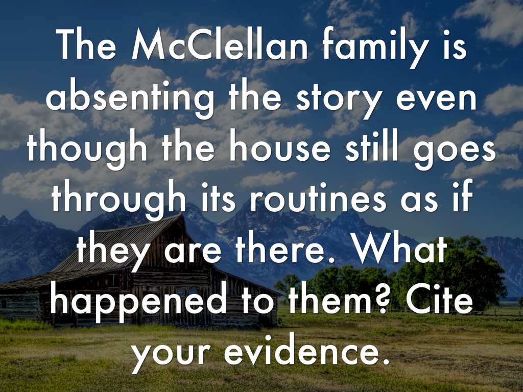 The McClellan family is absenting the story even though the house still goes through its routines as if they are there. What happened to them? Cite your evidence.