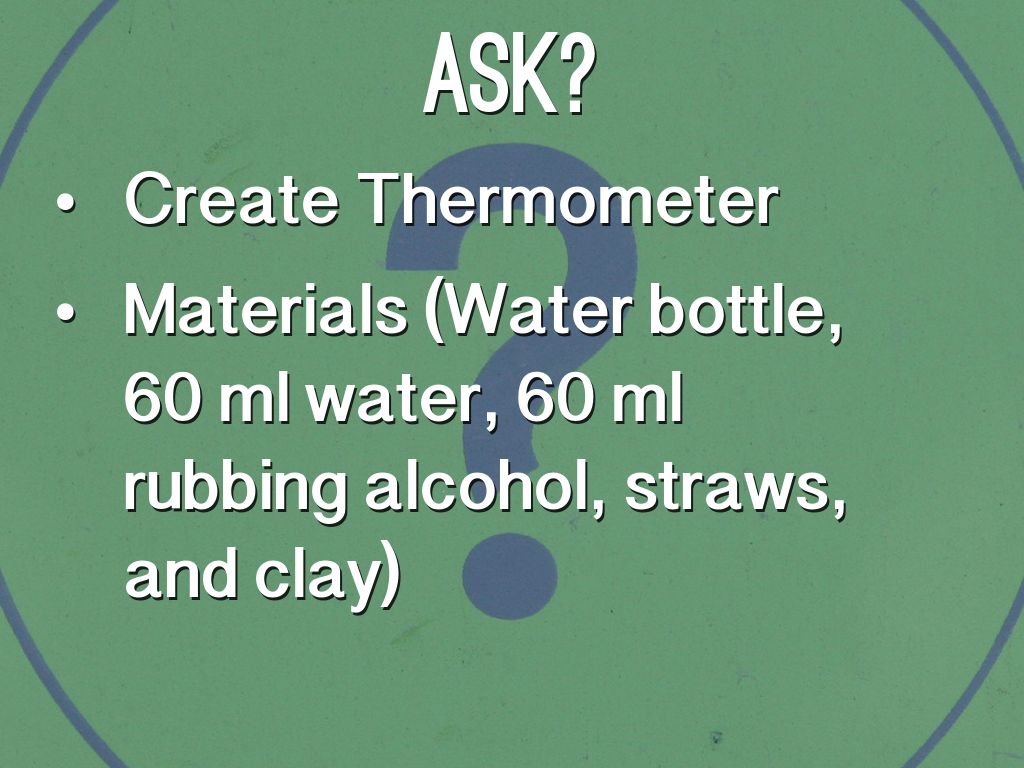 MEASURE & RECORD EXPERIMENTAL & ACTUAL TEMP OF INSIDE ATMOSPHERE