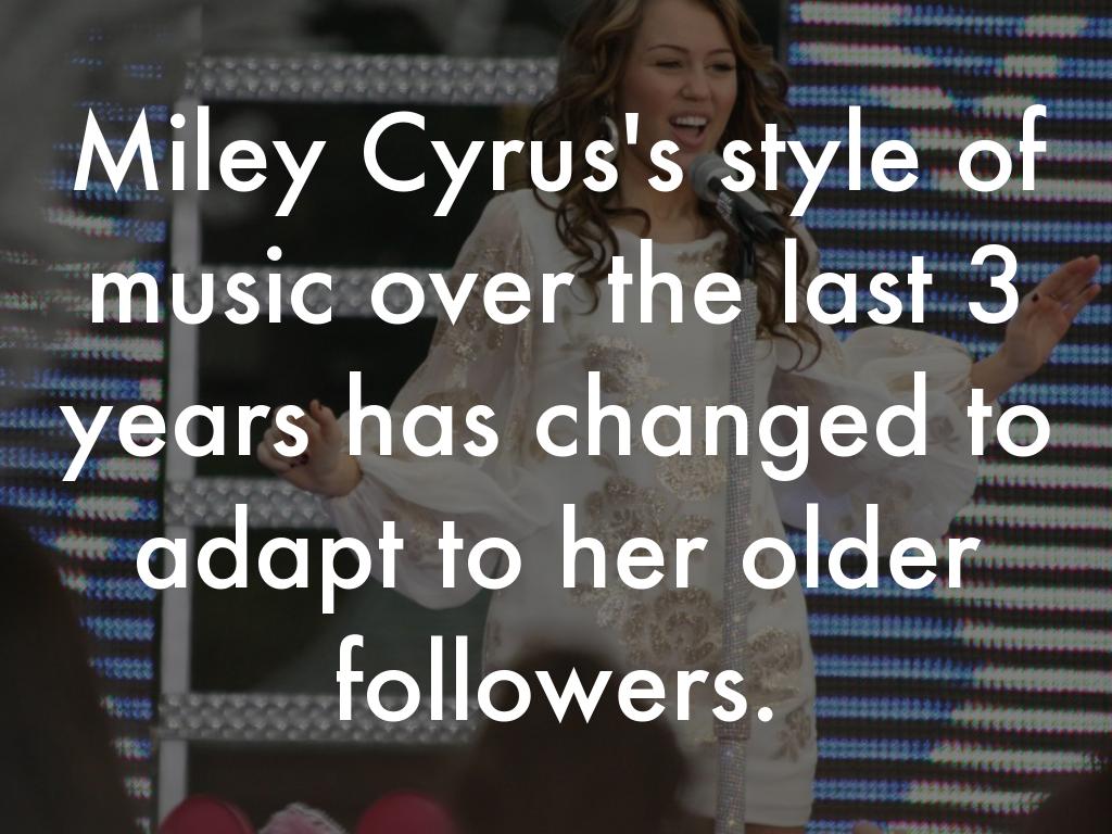 Miley Cyrus's style of music over the last 3 years has changed to adapt to her older followers.