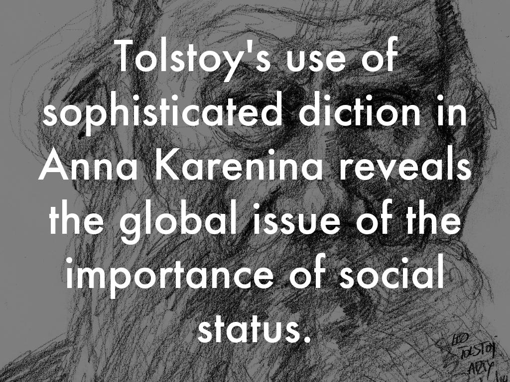 Tolstoy's use of sophisticated diction in Anna Karenina reveals the global issue of the importance of social status.