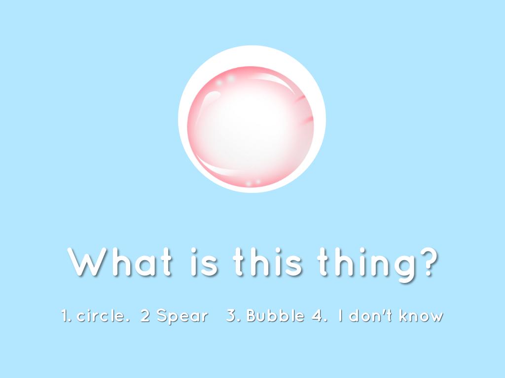 1. circle. 2 Spear 3. Bubble 4. I don't know