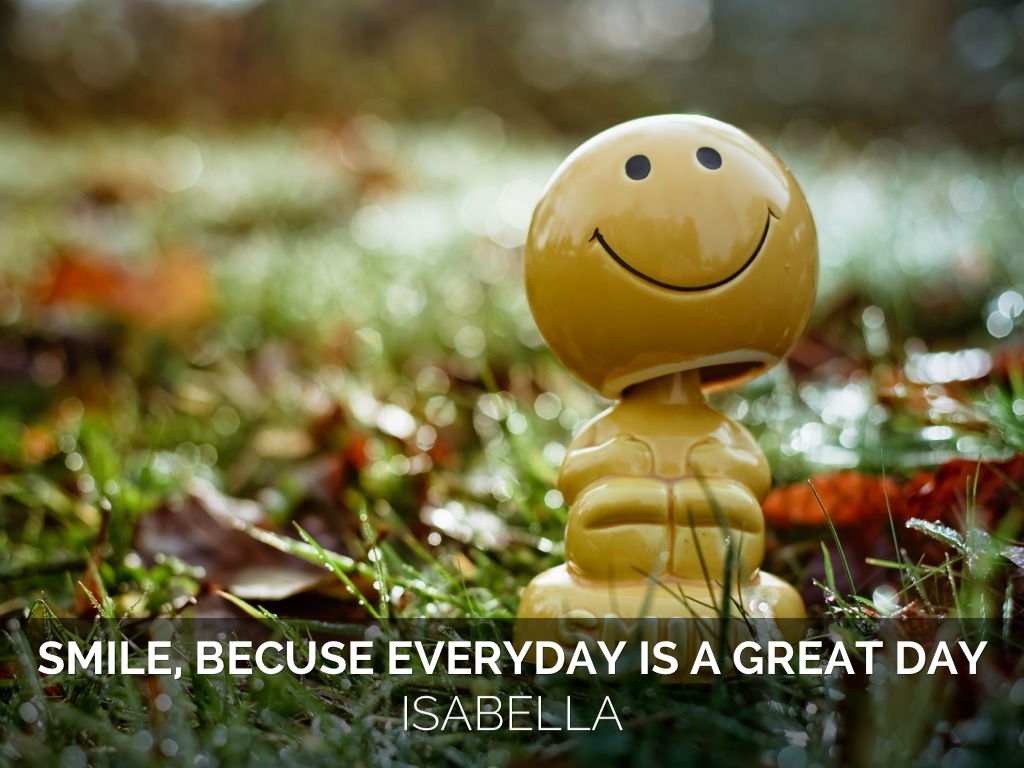 SMILE, BECUSE EVERYDAY IS A GREAT DAY