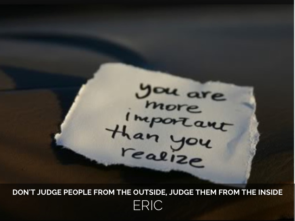 DON'T JUDGE PEOPLE FROM THE OUTSIDE, JUDGE THEM FROM THE INSIDE