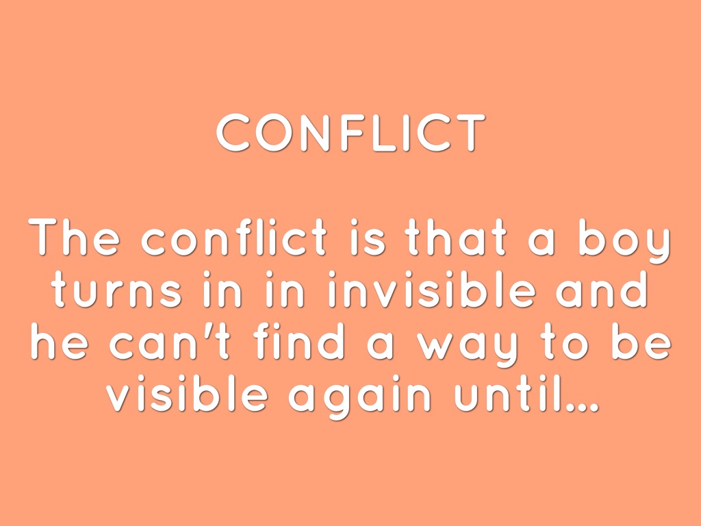 The conflict is that a boy turns in in invisible and he can't find a way to be visible again until...